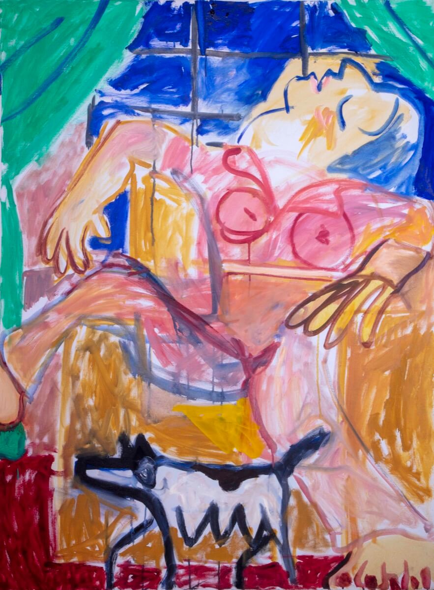 nel dipinto Ken Tielkemeier riproduce una scena di accoltellamento che aveva visto con i suoi occhi pochi anni prima per le strade di Brooklyn. L'artista rimase così scosso dall'accaduto al punto di rappresentarlo in uno dei suoi quadri. Nel dipinto si vedono degli uomini con il casco armati di bastoni e coltelli mentre feriscono un altro uomo. In basso ci sono dei cani e sulla destra un albero di natale addobbato.
